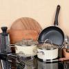 Pot de cuisson, Poêle à frire, Planche à découper, Couteaux de cuisine avec fourreaux, Cuillères en bois, Spatule, Louche, Râpe, Eplucheur, Tasses et cuillères à mesurer, Gants de four, Ciseaux de cuisine, Pinces, Ouvre-boîte/